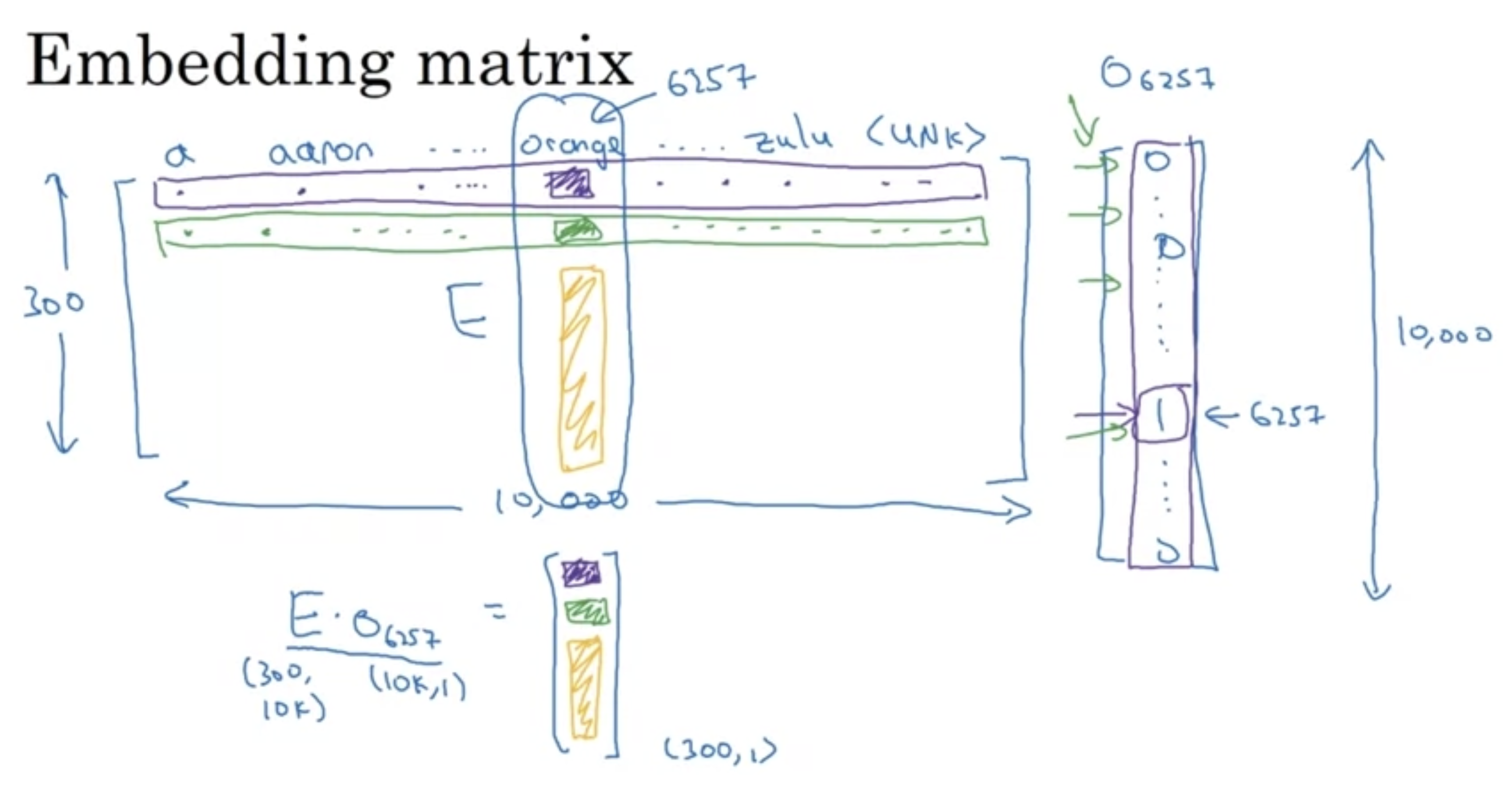 word embedding matrix는 결국 vocabulary에 있는 각각 word를 featureized vector로 표현할걸 모아놓은 것.