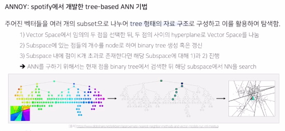 ANNOY : spotify가 개발한 tree-based ANN기법