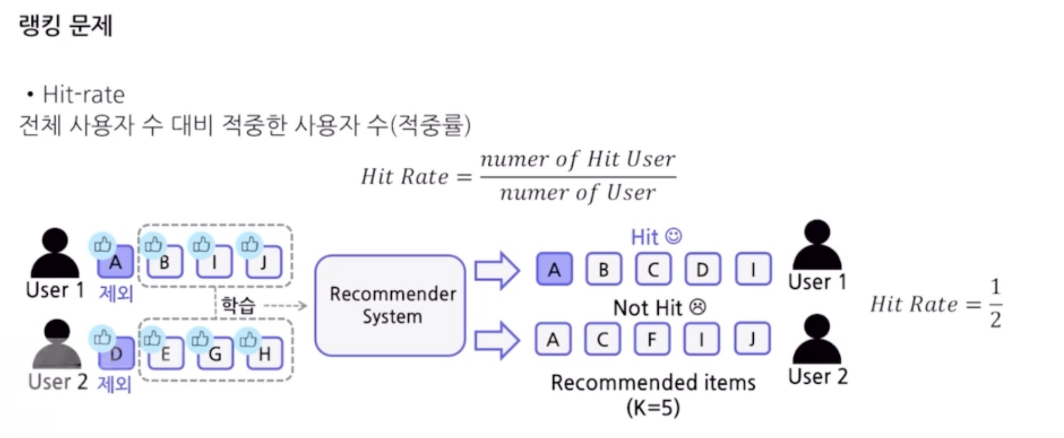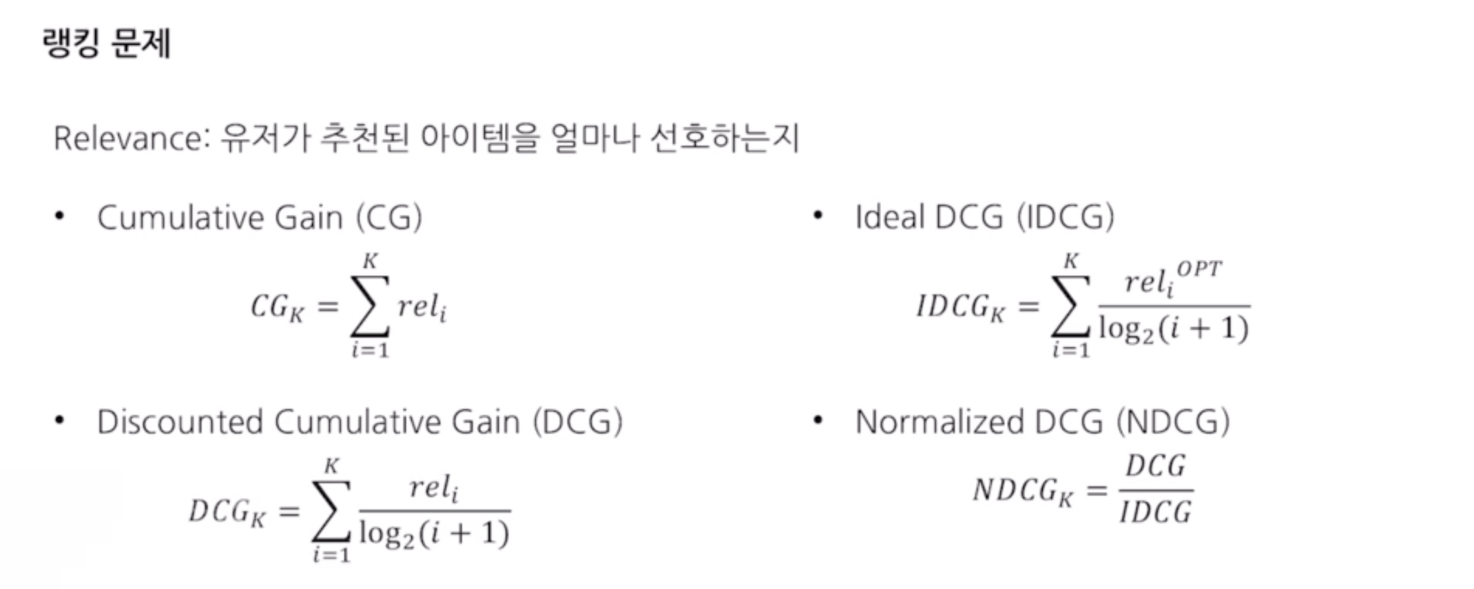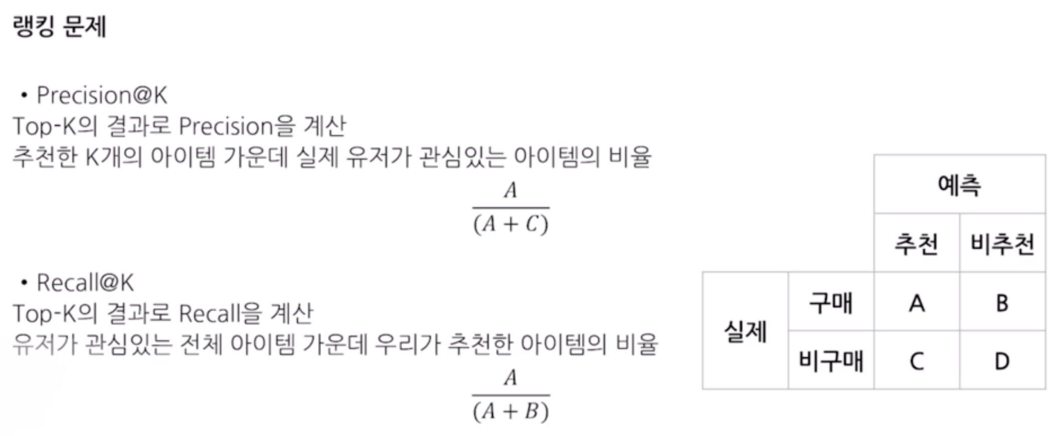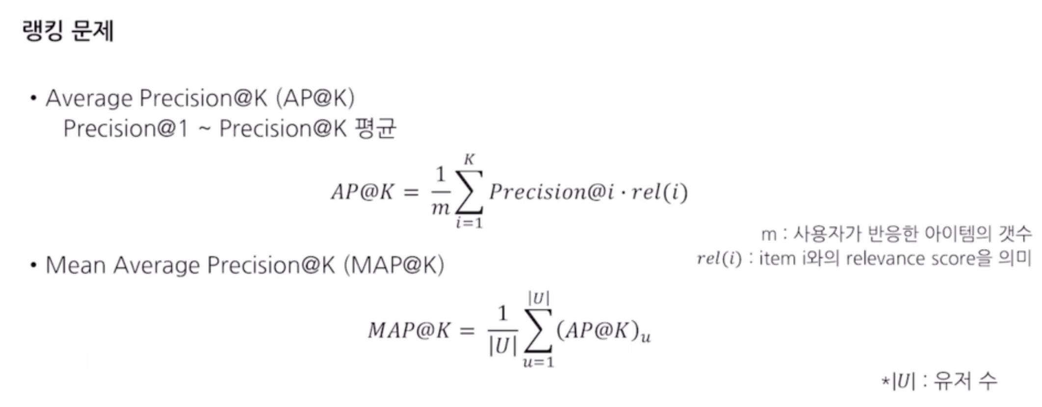 2. 랭킹 예측 시 : Precision@K, Recall@K, MAP@K, NDCG@K, Hit-rate