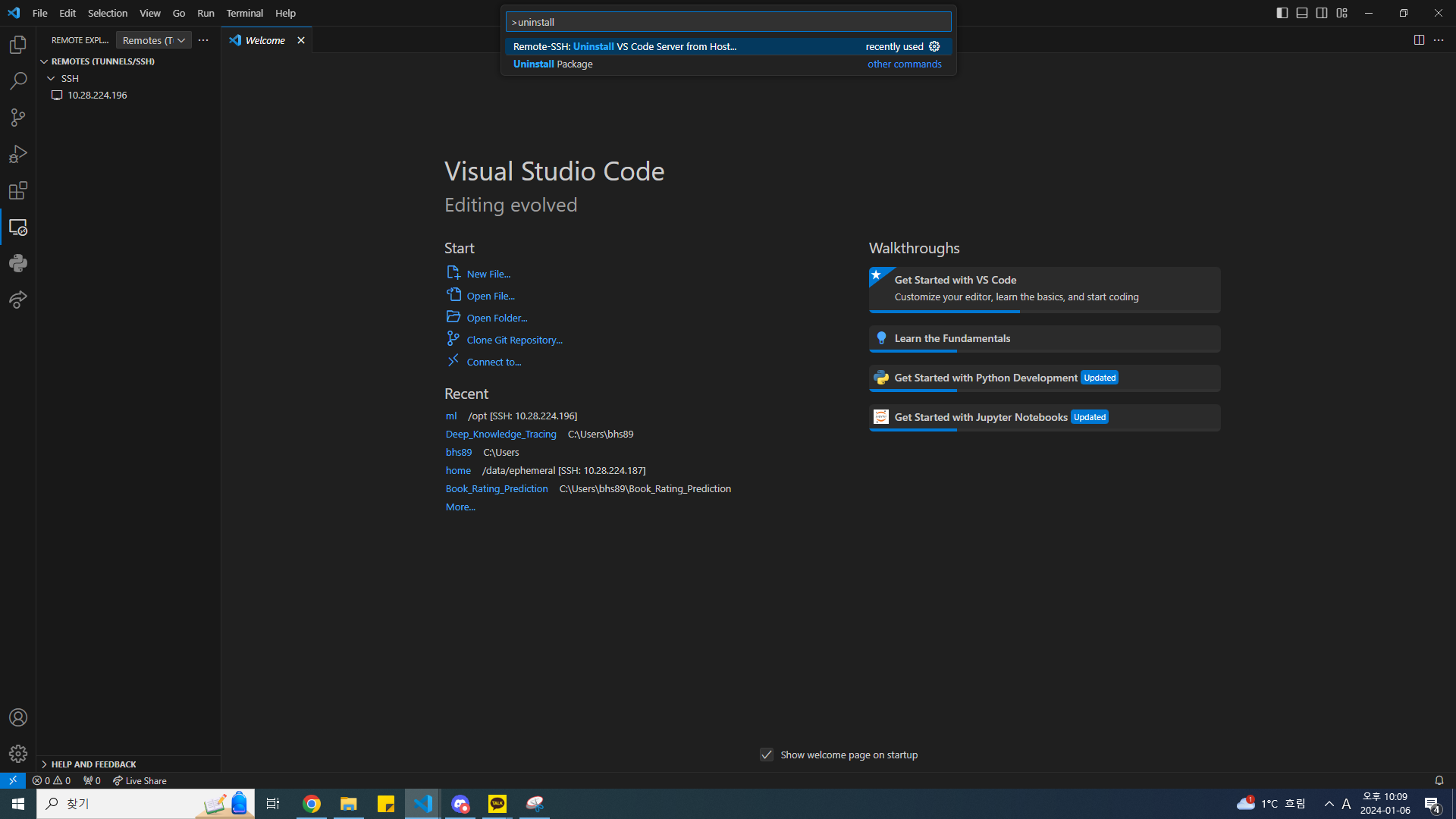 일단 나의 경우에는 vscode에서 f1키를 누른 후
