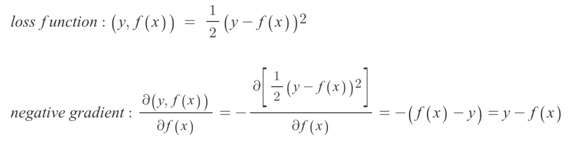 - loss function이 MSE라고 일 때 negative gradient를 구해보자.