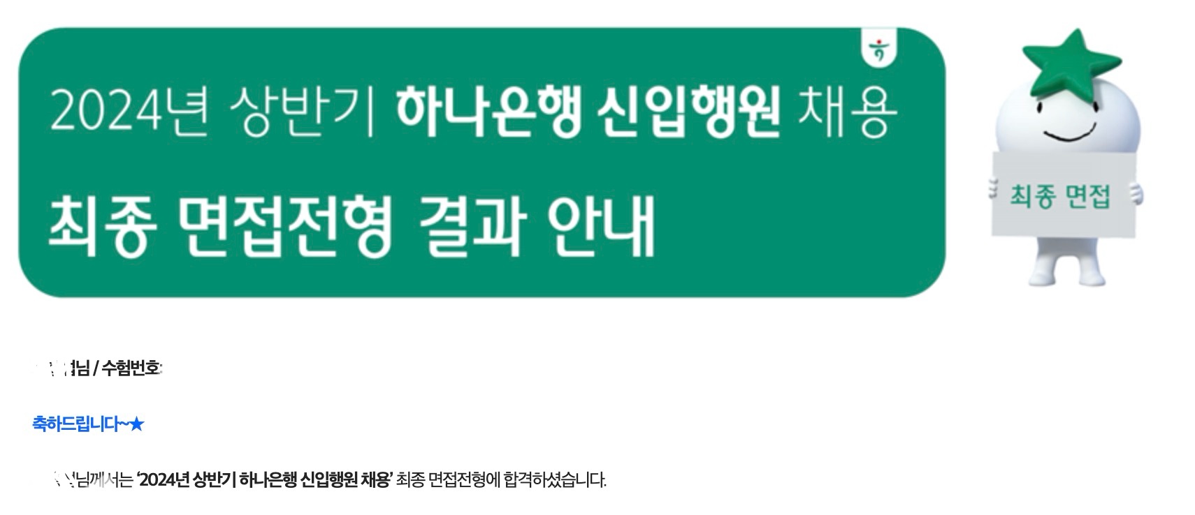 2차면접은 임원면접인데 한 조당 배정된 시간이 매우 짧아서 인당 질문이 3개?4개?정도로 끝났던 것 같아요. 한 질문당 답변은 1-2분이니까 엄청 짧다고 느껴졌는데 은행에 기본이 되는 표정관리, 침착함, 의사소통 능력이 가장 중요한 것 같아요.