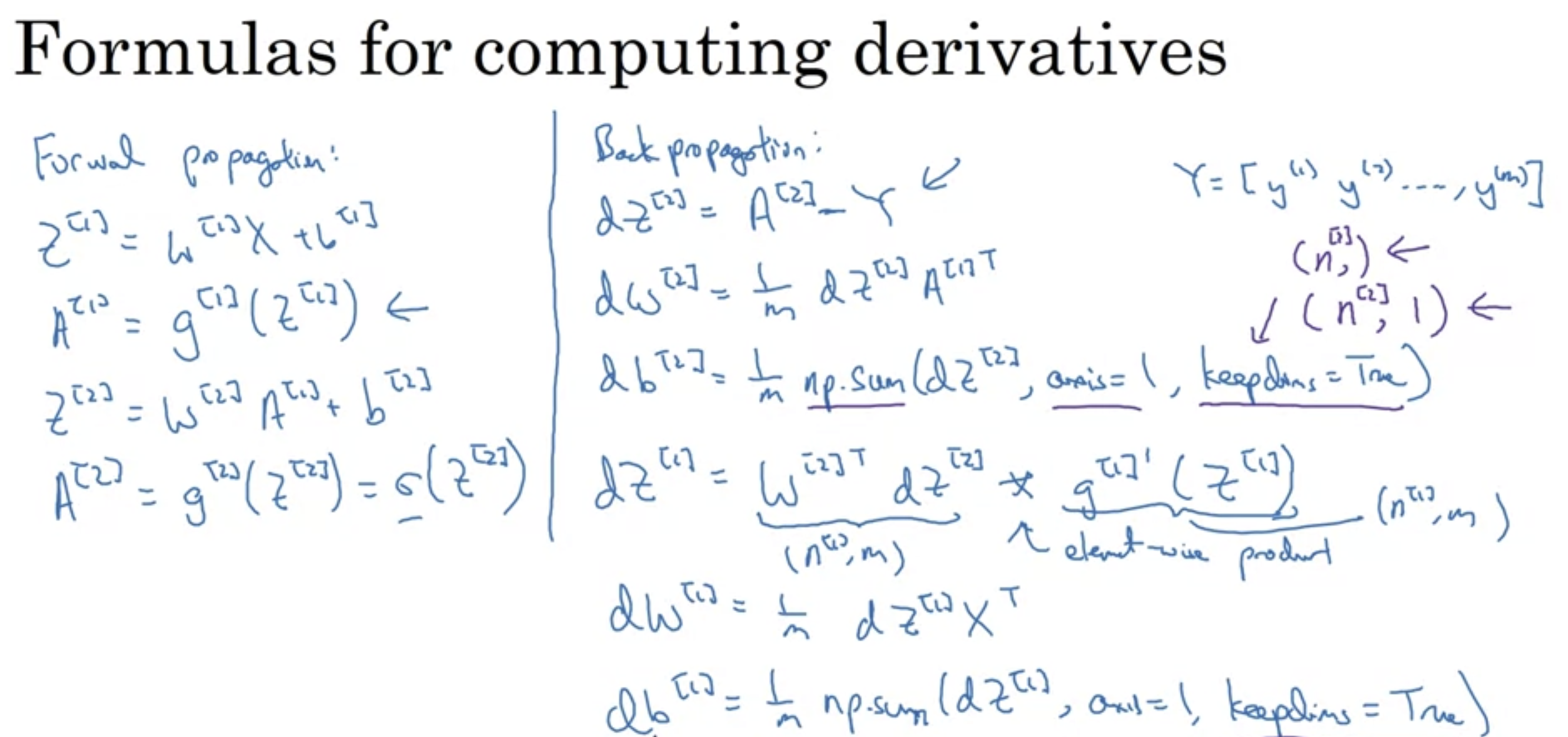 -cost function : J(w[1], b[1], w[2], b[2]) = 1/m * np.sum(y-y*)